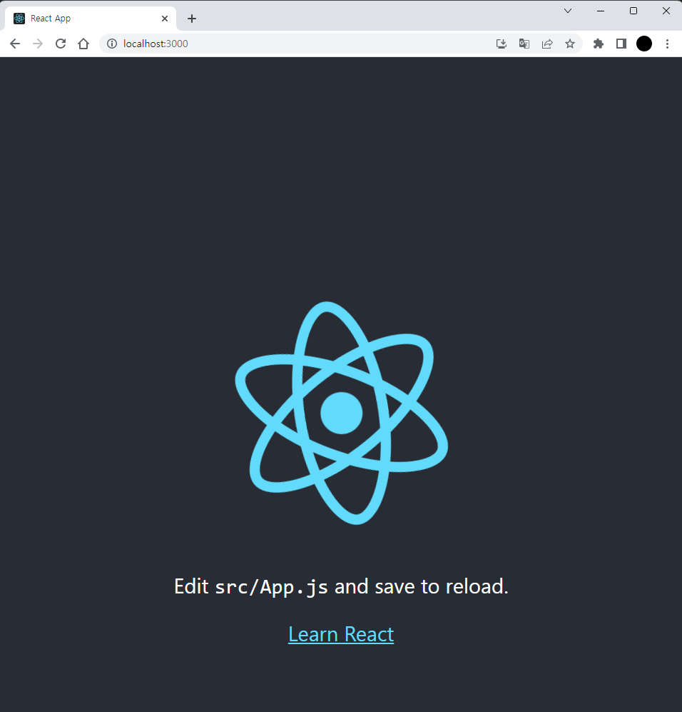 자동으로 웹 브라우저에서 새 탭이 열리면서 리액트 앱의 주소인 http://localhost:3000에 접속합니다.