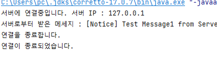 서버를 실행하고 있을 때, 클라이언트를 실행하면 위와 같은 실행 결과를 확인할 수 있습니다.