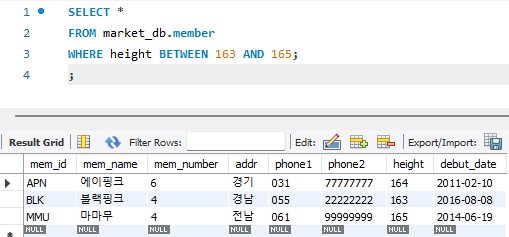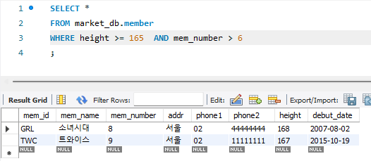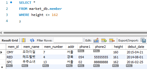 WHERE 절의 조건에 해당하는 데이터만 불러왔습니다