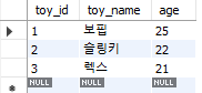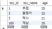 toy_id를 NULL로 두었지만, 자동으로 숫자가 입력됩니다.