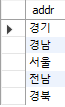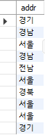 addr CHAR(2) NOT NULL, -- 지역(경기,서울,경남 식으로 2글자만입력)
