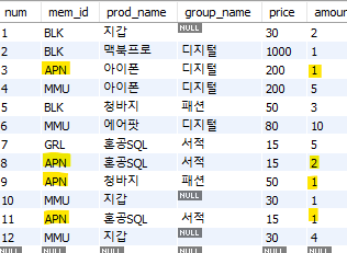 INSERT INTO buy VALUES(NULL, 'APN', '아이폰', '디지털', 200, 1);