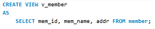 - 보안에 도움이 된다: 데이터베이스는 사용자마다 테이블에 접근하는 권한에 차별을 뒤서 처리합니다. 사용자가 뷰에만 접근할 수 있도록 하고, 뷰에 중요한 개인정보를 SELECT 하지 않는 방식으로 중요한 개인정보에 사용자가 접근할 수 없도록 간접적으로 제어할 수 있습니다.