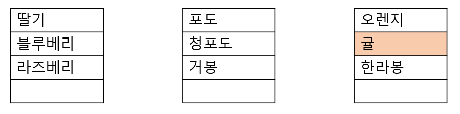딸기부터 귤까지 8건의 데이터, 페이지 3개를 검색해야 결과를 알 수 있습니다.