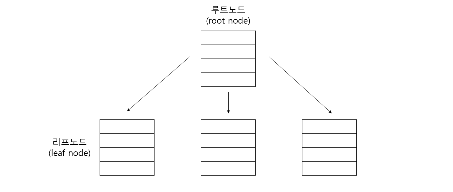 설명을 위해 루트 페이지와 리프 페이지의 데이터를 가나다순으로 정렬하였습니다.