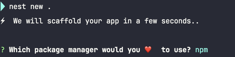 ์๋ก์ด NestJS ์ ํ๋ฆฌ์ผ์ด์ ์ ๋ง๋๋ ๋ช ๋ น์ด์ ๋๋ค.