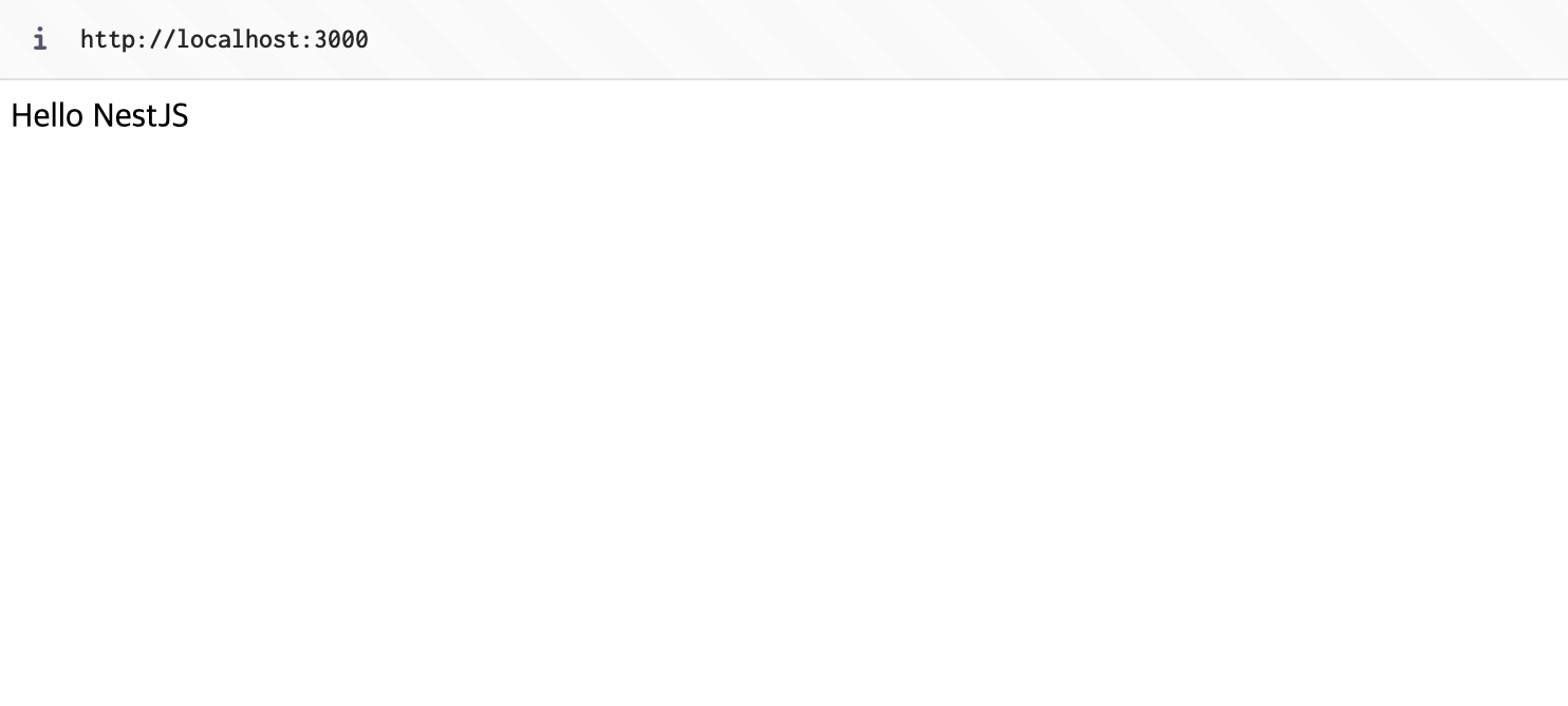 localhost:3000์ ์ ์ํ์ ๋ Hello NestJS๊ฐ ๋ณด์ด๋ฉด ์ฑ๊ณต์ ๋๋ค!