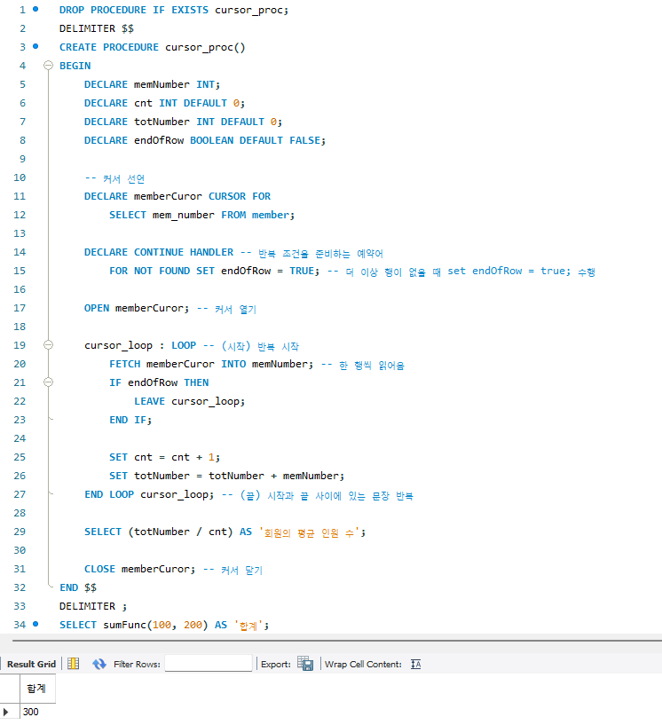 END LOOP cursor_loop; -- (끝) 시작과 끝 사이에 있는 문장 반복