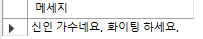 SELECT '신인 가수네요. 화이팅 하세요.' AS '메세지';