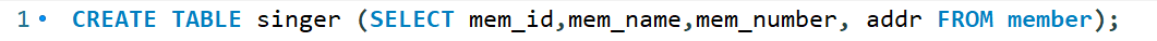 테이블을 복사하여 새로운 테이블 singer를 만들었습니다.